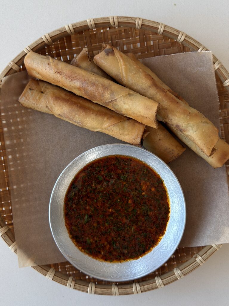 כדורי עוף בציפוי שערות אגרול ברוטב קרמל פלפלים תאילנדי